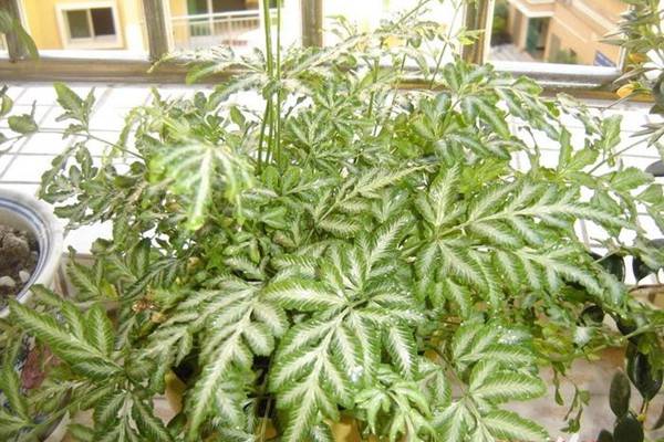 三色凤尾蕨三色凤尾蕨,羽状的叶片两侧有着白色或者玫瑰色的宽带。