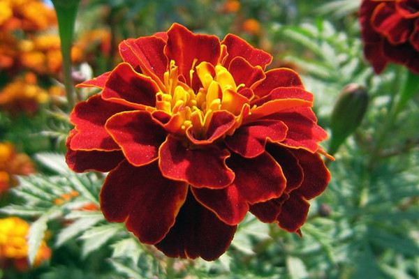 品种:孔雀草的品种较多,因为种间反复杂交,除红黄色外,还培育出纯黄色、橙色等品种,还有单瓣、复瓣等等品种。花期从“五一”一直开到“十一”。
