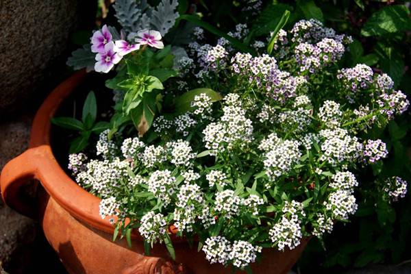 开着白色小花的香雪球可以搭配很多其他色彩的花卉,是花坛、花境中非常不错的镶边材料。这样一幅美丽的景色也会让人流连忘返,赞不绝口。