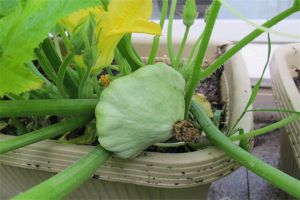 定植:定植盆要求上口径具有40-50厘米的大盆。内装营养土。营养土配方为:田土:腐熟畜禽粪:锯未(或腐熟马粪)一7:2:1。每盆定植飞碟瓜1株,并立高1米、粗2-3厘米的架条1个。浇足定植水。生长期内要保持土壤湿润。因为飞碟瓜属喜光植物,所以应置盆于通风良好,光线充足的地方。