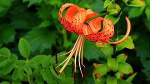 之一:卷丹,可食用,花为橙红色,花瓣上有紫黑色斑点