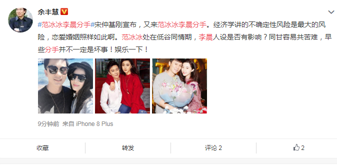 最近娱乐圈不太平,宋慧乔宋仲基离婚事件刚出来,又开始李晨和范冰冰了。
